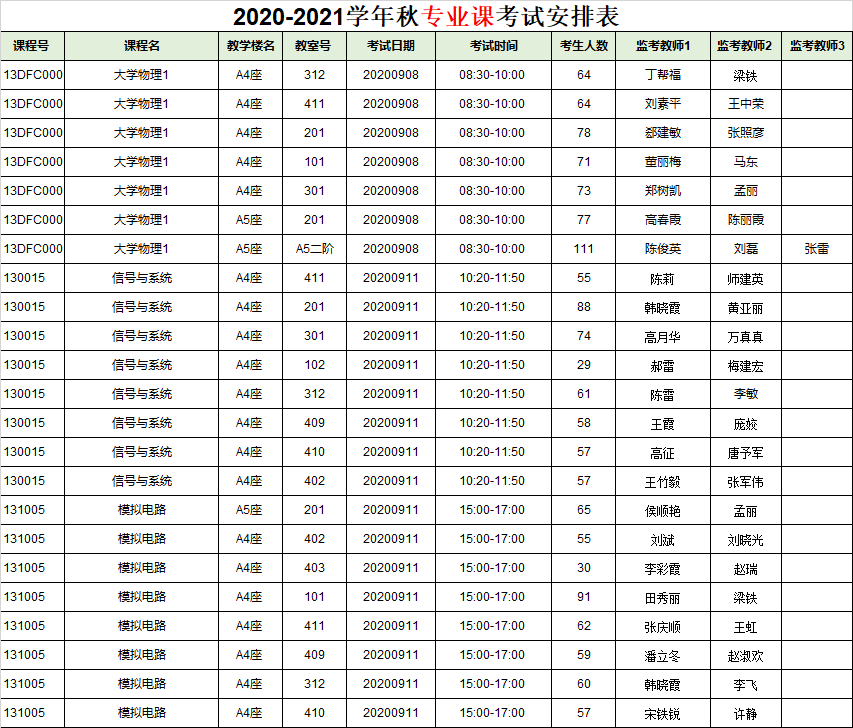 我院学生若选其他学院的专业课,其考试安排不在以上表中,请学生本人联系任课老师或相应学院确认考试安排信息。